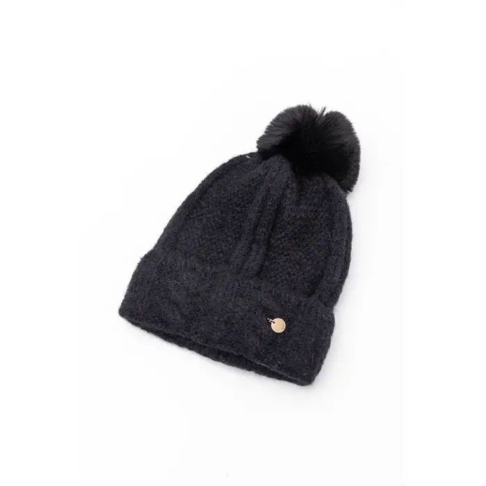Γυναικείος σκούφος από ακρυλικό μοχέρ με ιδιαίτερη πλέξη και πλεξούδες στο ρεβέρ του. Επένδυση από ζεστή ακρυλική γούνα.
