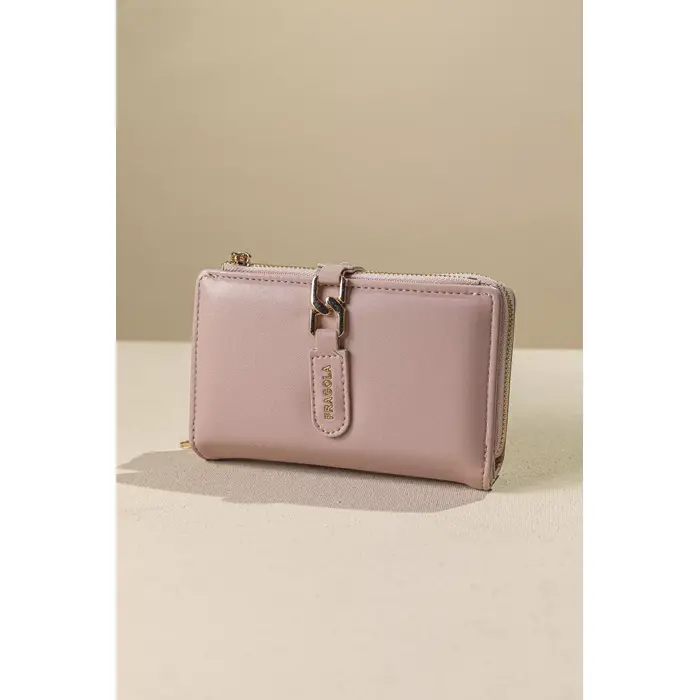 • Κομψό και πρακτικό γυναικείο πορτοφόλι μεσαίου μεγέθους, σχεδιασμένο για συνδυάζει στυλ και λειτουργικότητα, αποτελεί την ιδανική επιλογή για καθημερινή χρήση. • Διαθέτει πολυθέσιο εσωτερικό με ξεχωριστές θήκες για κάρτες, ειδική θέση για χαρτονομίσματα και ανεξάρτητη θήκη με φερμουάρ για κέρματα. • Το μεταλλικό κούμπωμα και οι χρυσές λεπτομέρειες προσθέτουν μια διακριτική πινελιά πολυτέλειας. • Η compact αλλά ευρύχωρη κατασκευή του επιτρέπει την άνετη οργάνωση όλων των απαραίτητων, χωρίς να πιάνει περιττό χώρο στη τσάντα σας.