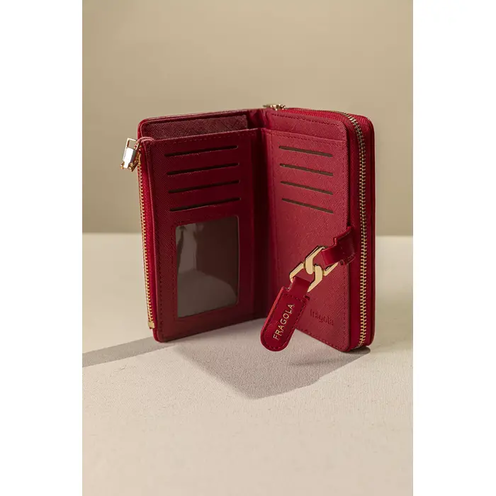 • Κομψό και πρακτικό γυναικείο πορτοφόλι μεσαίου μεγέθους, σχεδιασμένο για συνδυάζει στυλ και λειτουργικότητα, αποτελεί την ιδανική επιλογή για καθημερινή χρήση. • Διαθέτει πολυθέσιο εσωτερικό με ξεχωριστές θήκες για κάρτες, ειδική θέση για χαρτονομίσματα και ανεξάρτητη θήκη με φερμουάρ για κέρματα. • Το μεταλλικό κούμπωμα και οι χρυσές λεπτομέρειες προσθέτουν μια διακριτική πινελιά πολυτέλειας. • Η compact αλλά ευρύχωρη κατασκευή του επιτρέπει την άνετη οργάνωση όλων των απαραίτητων, χωρίς να πιάνει περιττό χώρο στη τσάντα σας.