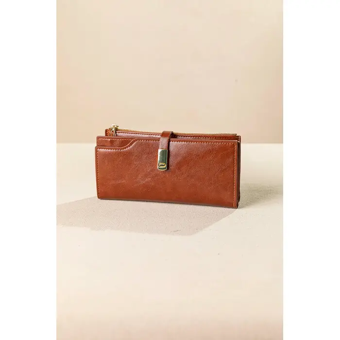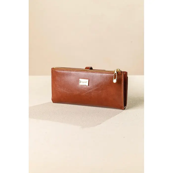 Μεγάλο πορτοφόλι που κλείνει με καπάκι με μαγνητικό μπουτόν. Διαθέτε πολλές θήκες για κάρτες και μεγάλη θήκη για χαρτονομίσματα. Εξωτερική θήκη με φερμουάρ για τα ψιλά με διαχωριστικό με έξτρα θήκη με φερμουάρ. Υλικό: Συνθετικό δέρμα με μαλακή υφή.