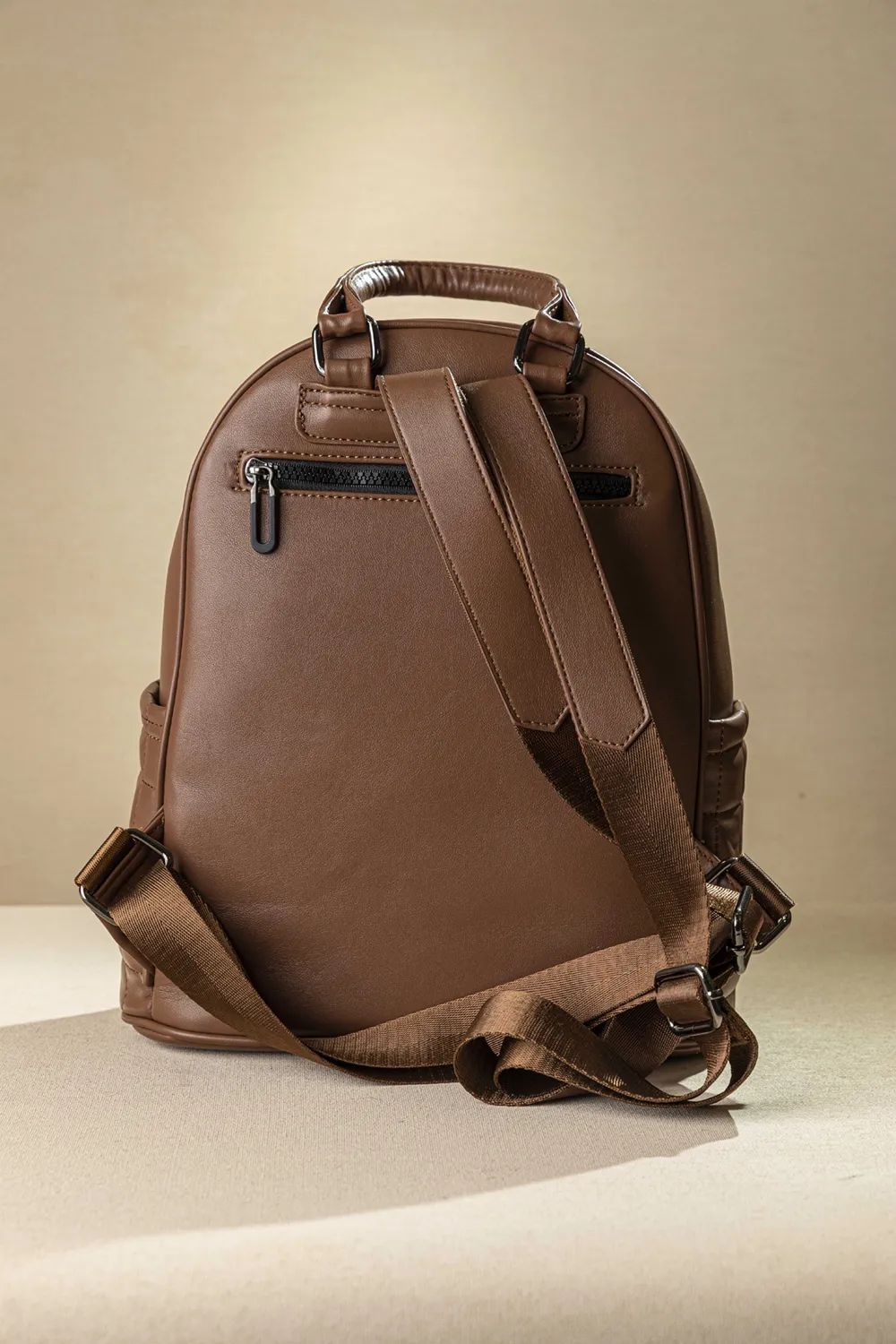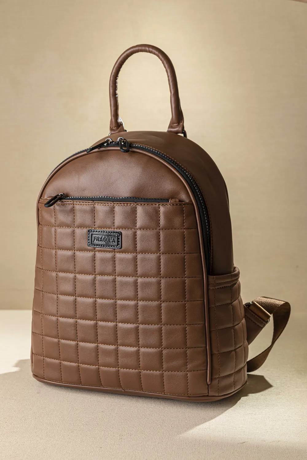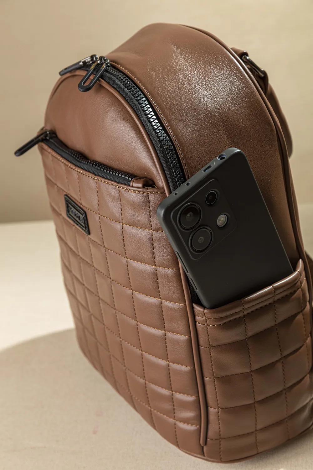 Ενας ενιαίος μεγάλος χώρος με έξτρα μικρά τσεπάκι στη φόδρα. Στο μπροστά μέρος της διαθέτει μεγάλη τσέπη που κλείνει με φερμουάρ και άλλη μια μικρότερη τσέπη στο πίσω μέρος της τσάντας . Στα πλαινά της η τσάντα διαθέτει δυο μικρές θήκες για μικροαντικείμενα ή εισιτήρια. Τα “χεράκια” της πλάτης είναι με δερματίνη και ιμάντα για καλύτερη εφαρμογή και μεγαλύτερη άνεση. Οι μαύρες λεπτομέρειες της δίνουν μια casual και sport πινελιά. Υλικό: Puffy συνθετικό δέρμα με τετράγωνα γαζιά.