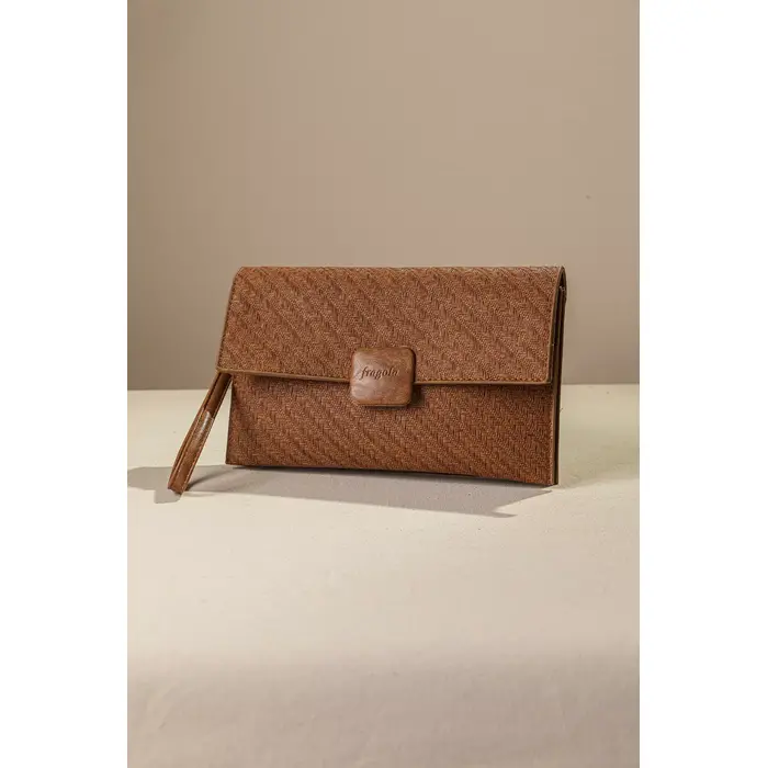 • Κατασκευασμένος από συνθετικό δέρμα με ανάγλυφη ψάθινη υφή, προσφέρει φυσικό χαρακτήρα και καλοκαιρινό στυλ. • Ενώ οι διακριτικές λεπτομέρειες προσθέτουν μια elegant πινελιά. Διαθέτει καπάκι με σταθερό κλείσιμο με το λογότυπο μας.