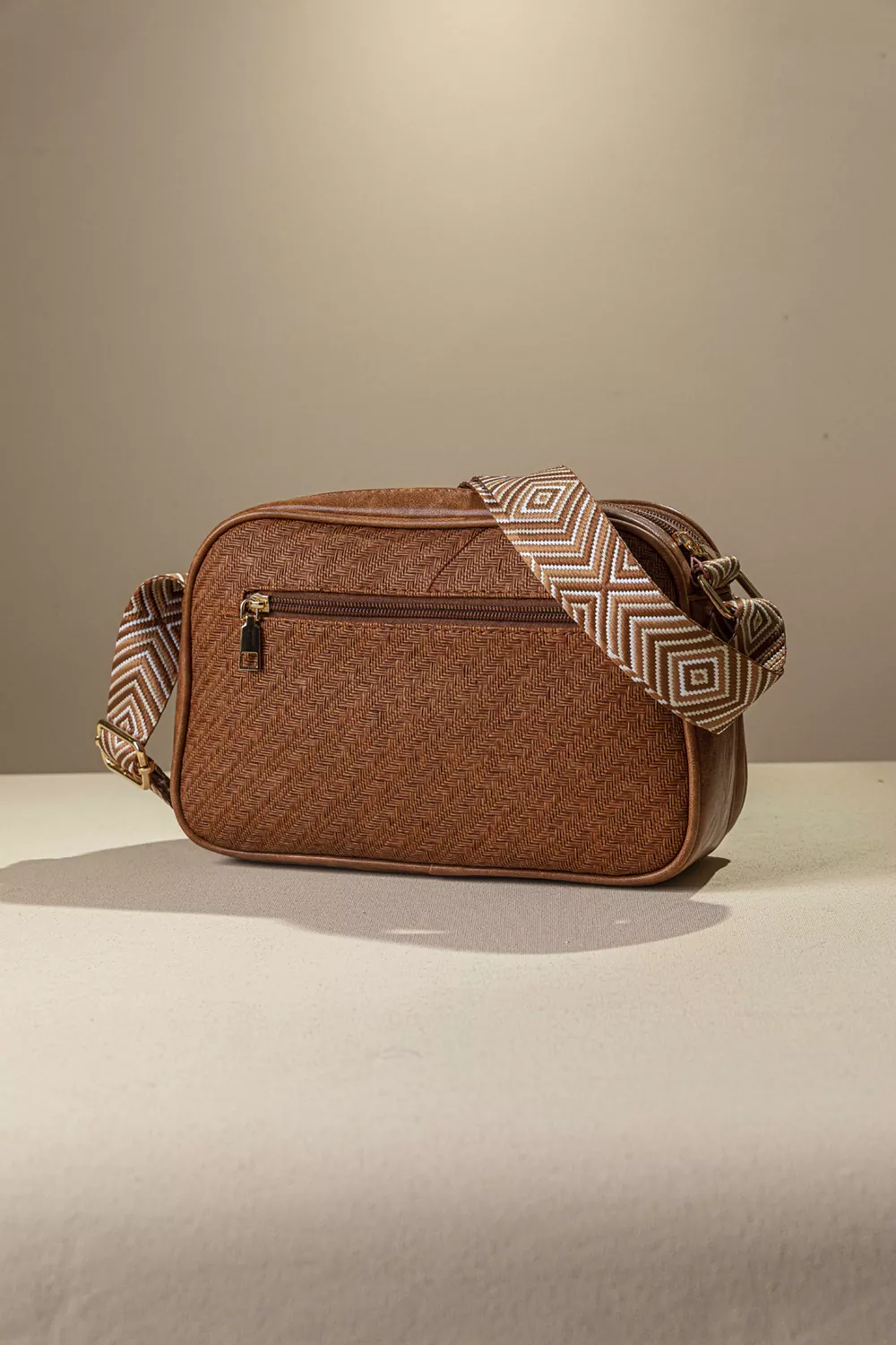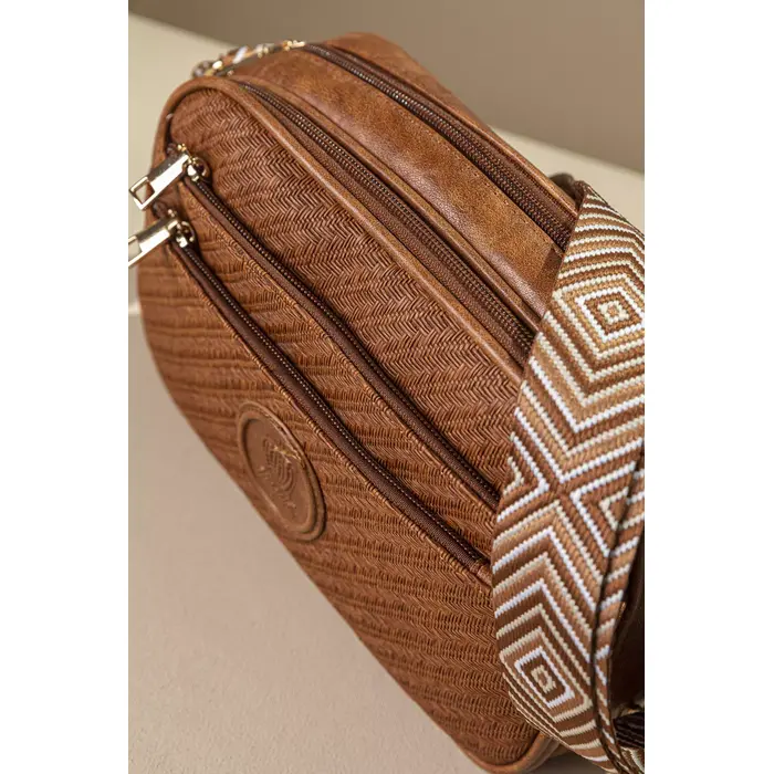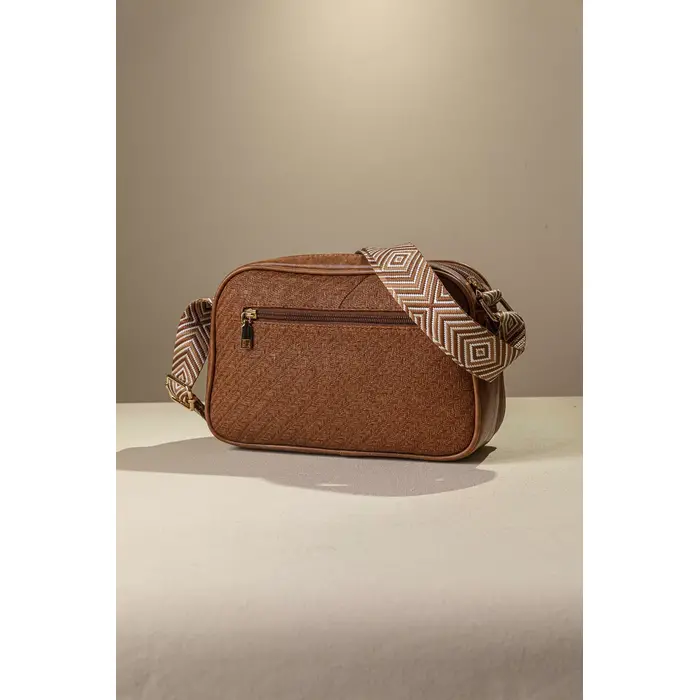Υλικό: Συνθετικό δέρμα με τη μορφή ψάθας σε γήινα χρώματα.