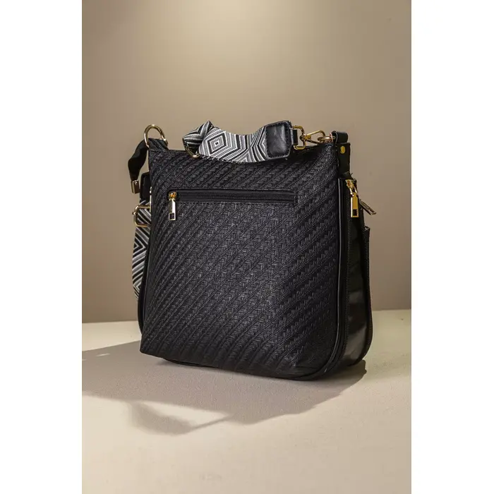 • Διαθέτει ένα κοντό χέρι για τον ώμο και ένα μακρύ με αυξομείωση για να τη φοράτε χιαστί.