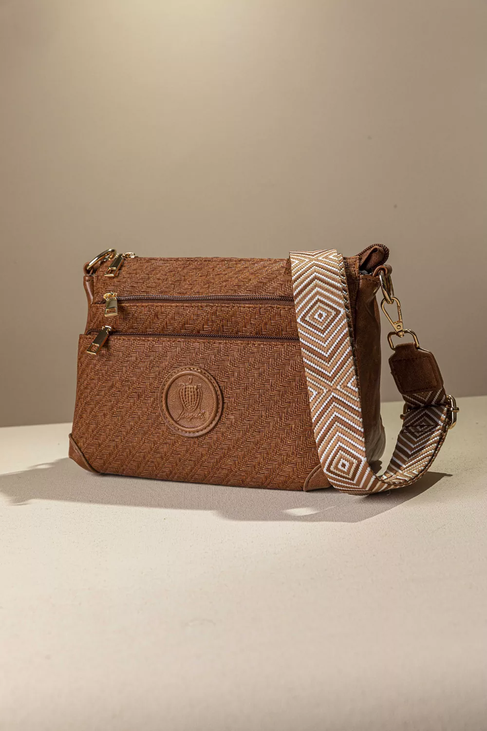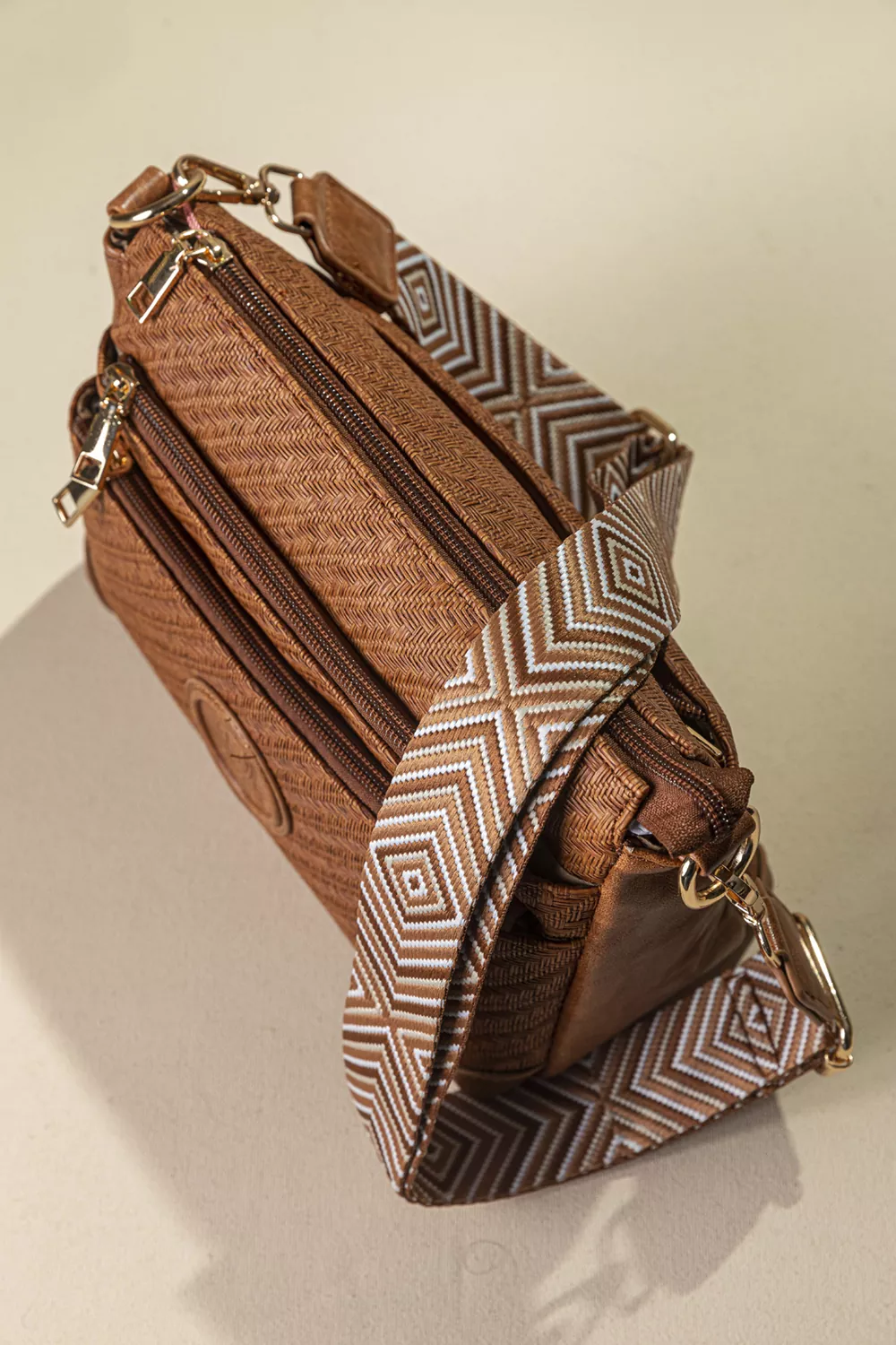 Υλικό: Συνθετικό ανάγλυφο δέρμα με μορφή ψάθας σε γήινα χρώματα