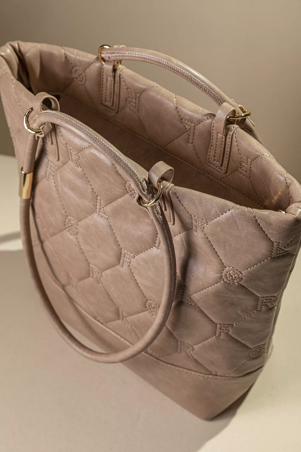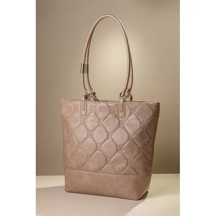 • Κομψή γυναικεία τσάντα με καπιτονέ υφή και διακριτικό μοτίβο του λογοτύπου της εταιρείας μας.