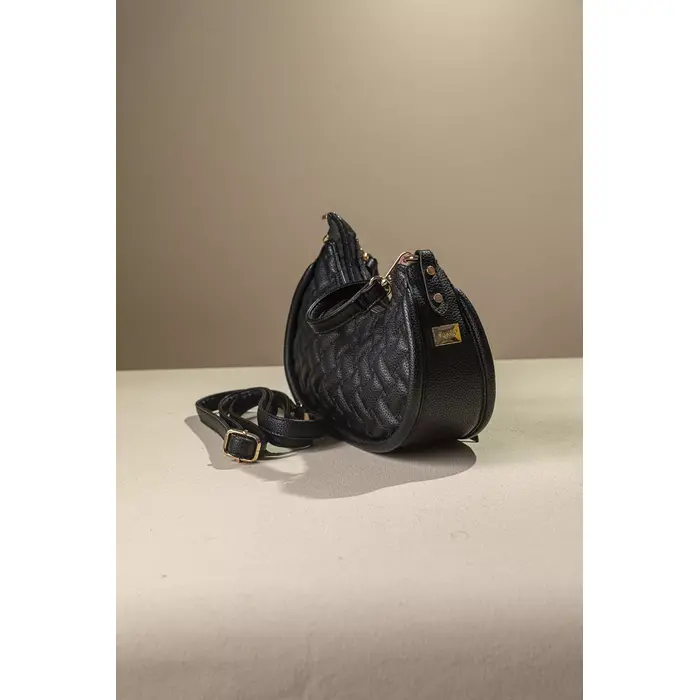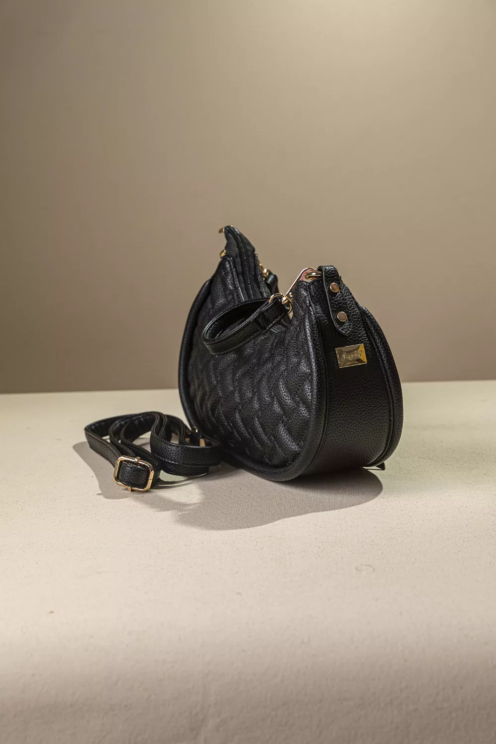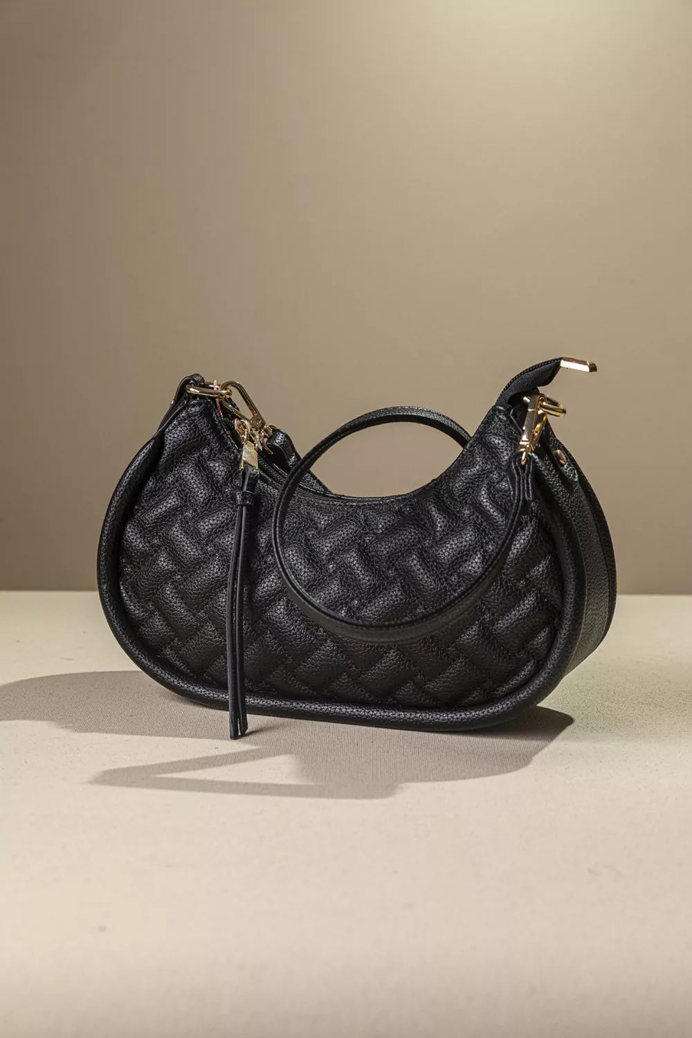 • Κομψή τσάντα ώμου με καπιτονέ σχέδιο και σχήμα μισοφέγγαρο. Ιδανική για καθημερινή και απογευματινή χρήση. Διαθέτει άνετο εσωτερικό χώρο με όλα τα απαραίτητα τσεπάκια.