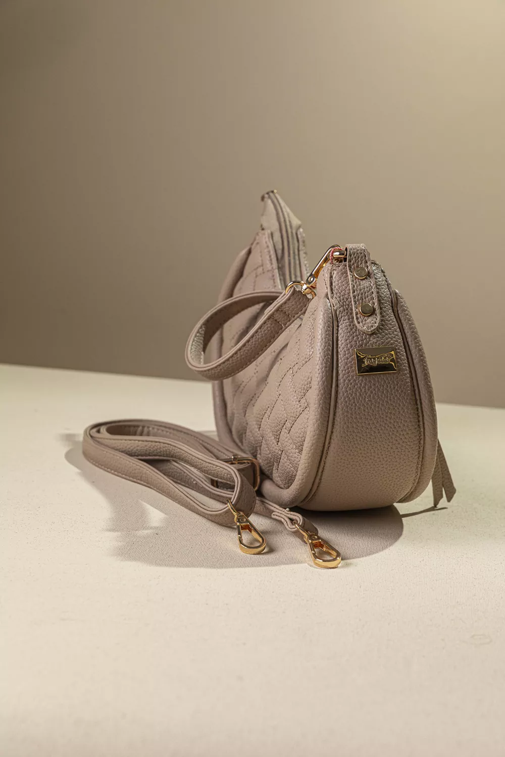• Κομψή τσάντα ώμου με καπιτονέ σχέδιο και σχήμα μισοφέγγαρο. Ιδανική για καθημερινή και απογευματινή χρήση. Διαθέτει άνετο εσωτερικό χώρο με όλα τα απαραίτητα τσεπάκια.