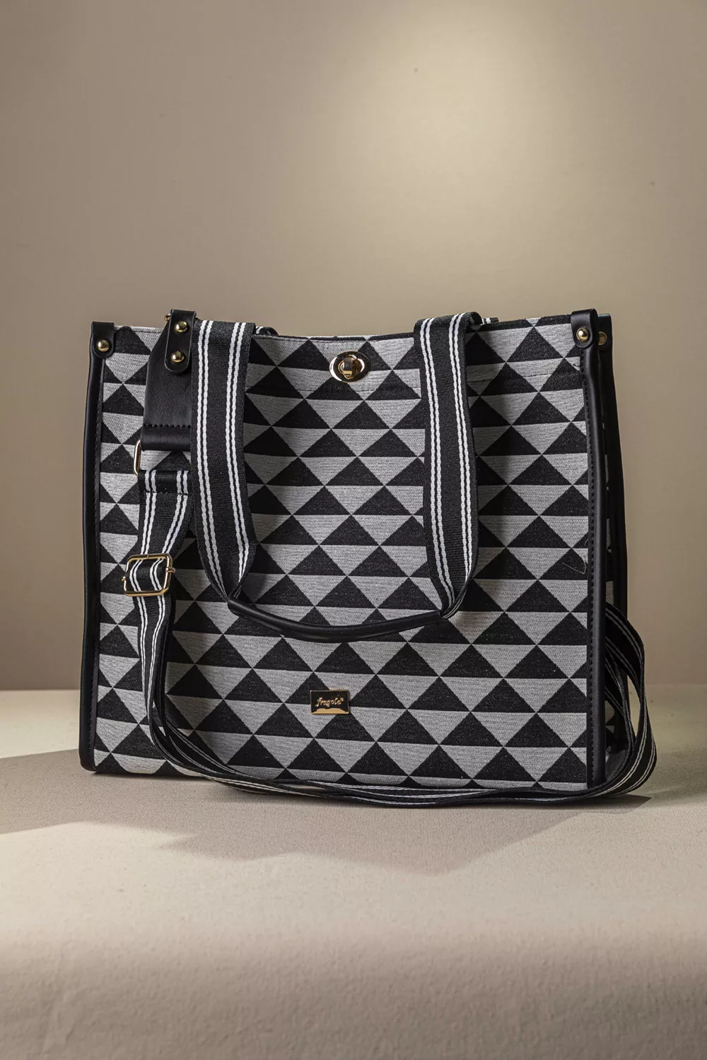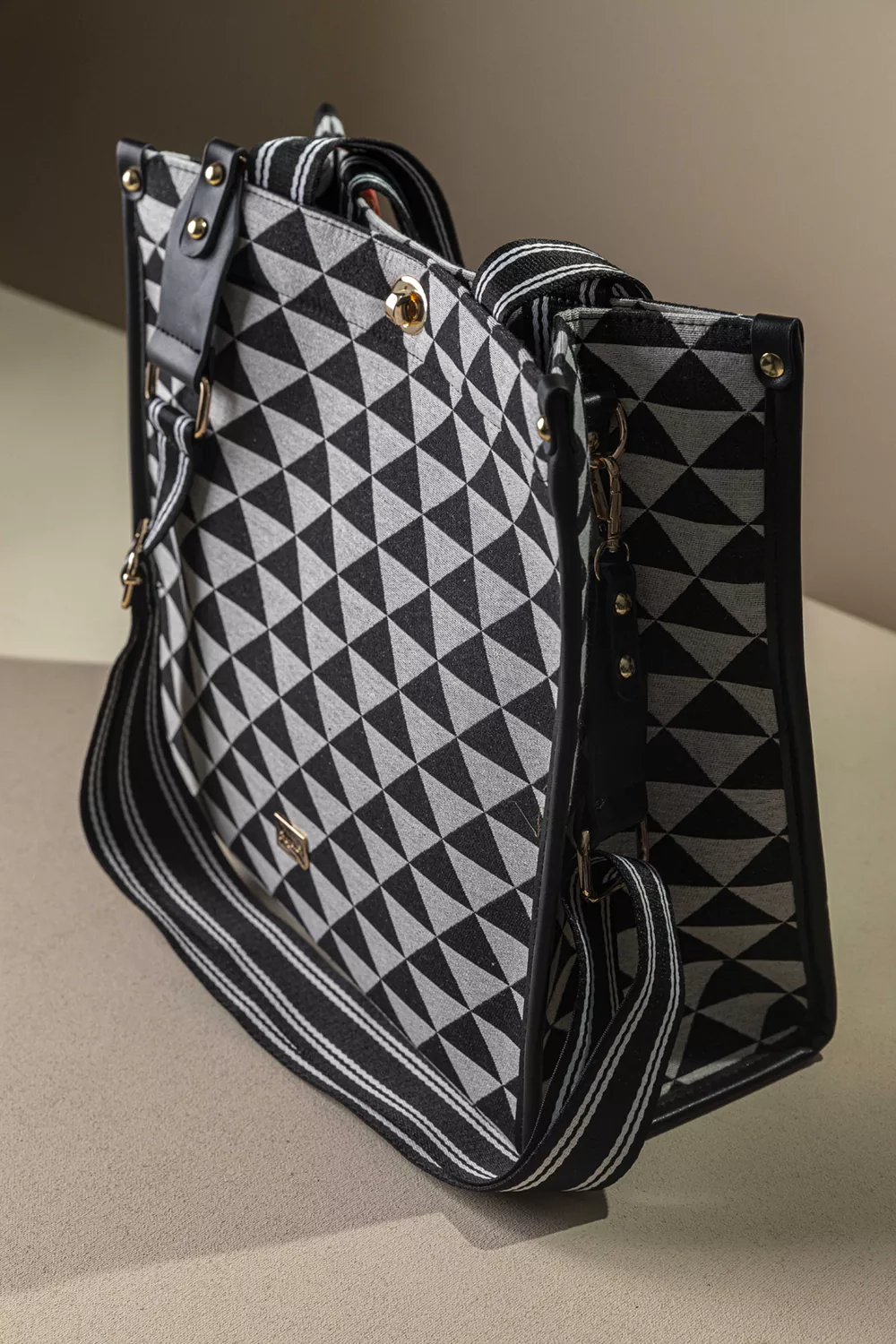 • Υφασμάτινη τσάντα με εντυπωσιακό μοτίβο και μοντέρνες λεπτομέρειες που ξεχωρίζουν.