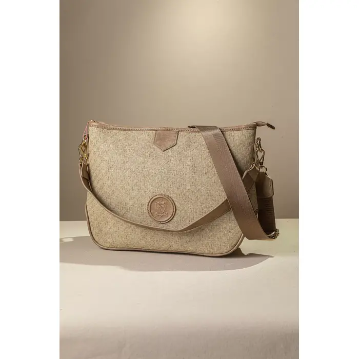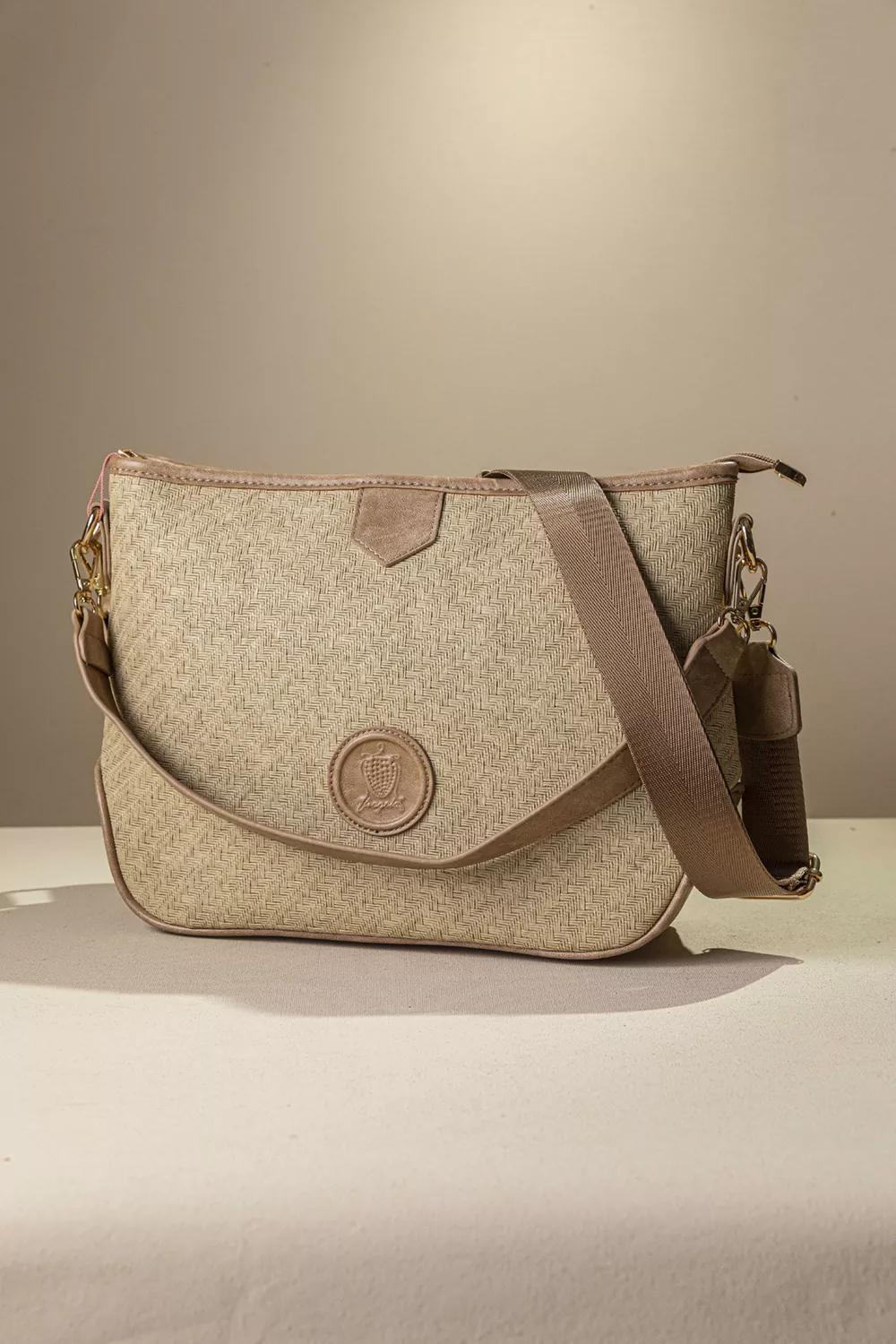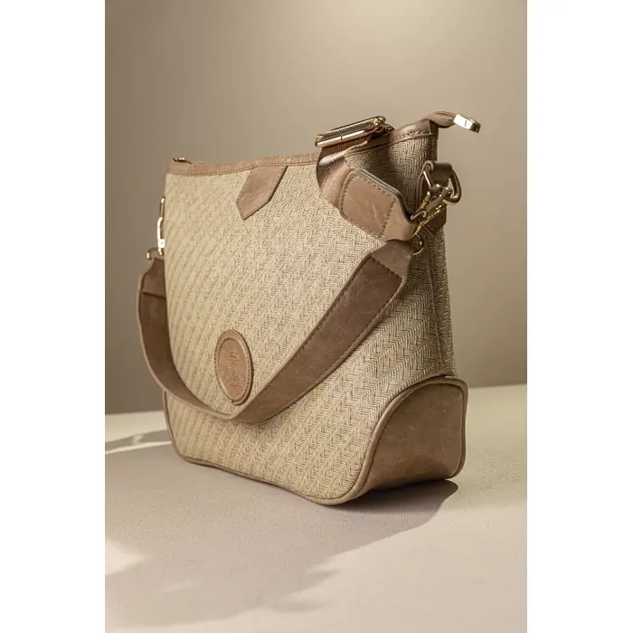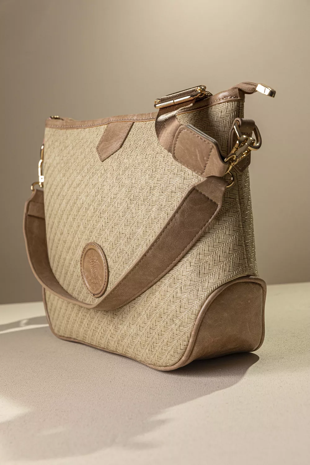 Υλικό: Συνθετικό δέρμα με υφή ψάθας σε γήινες αποχρώσεις.
