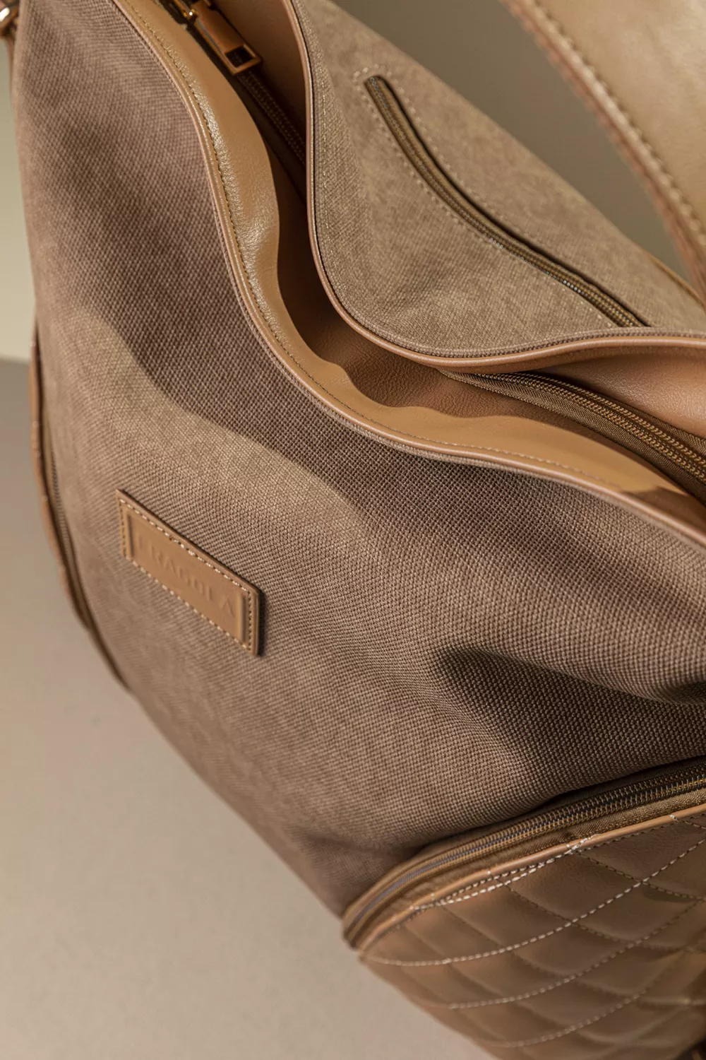 • Συνδυάζει υφασμάτινη υφή με καπιτονέ λεπτομέρειες προσφέροντας άνεση πρακτικότητα και σύγχρονο στιλ.