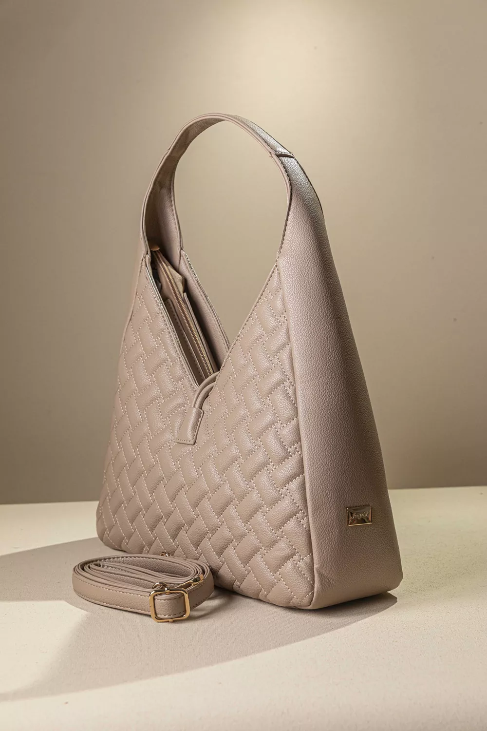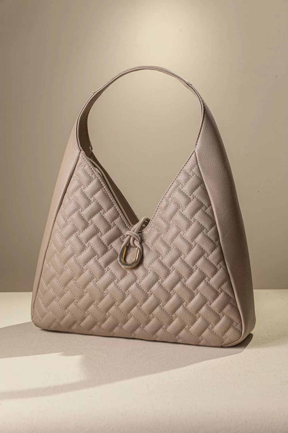 • Τσάντα ώμου με καπιτονέ υφή που κάνει το καθημερινό να φαίνεται πιο προσεγμένο. Μαλακό σώμα, άνετο χέρι ώμου και ιδιαίτερο μεταλλικό κούμπωμα στο κέντρο που τραβάει το βλέμμα.