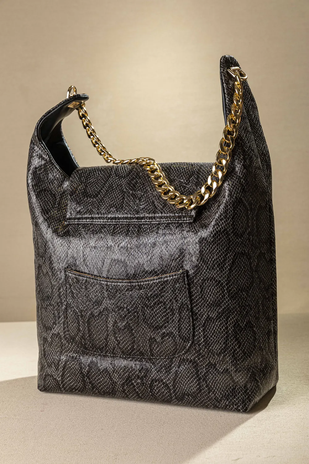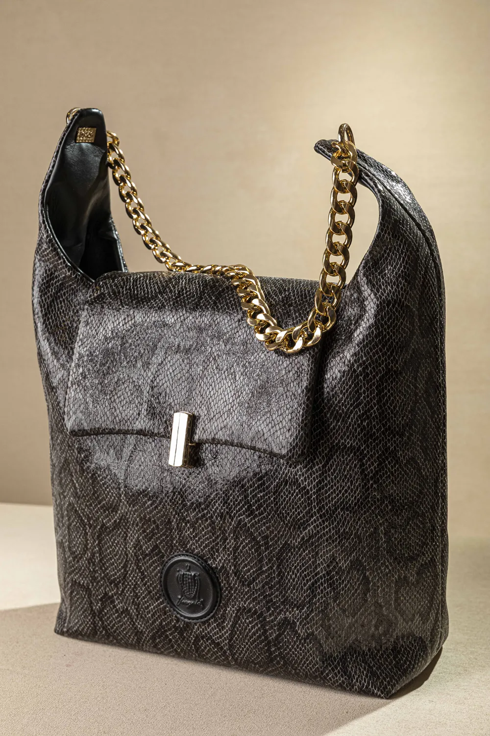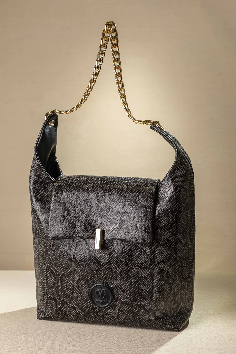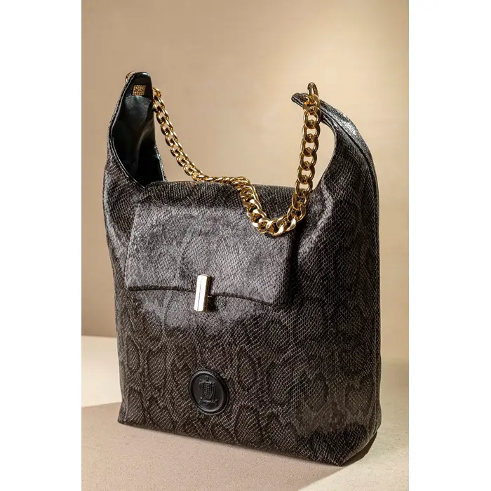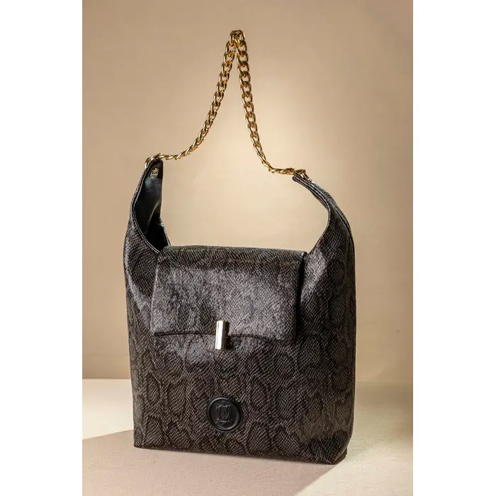 Αυτή είναι η πιο στιλάτη και ελαφριά τσάντα ώμου! Κλείνει με καπάκι με περίτεχνο μεταλλικό κλιπ. Ένας ενιαίος χώρος εσωτερικά που διαθέτει όλα τα μικροτσεπάκια με φερμουάρ ή χωρίς. Στο πίσω μέρος της υπάρχει έξτρα μικρό τσεπάκι! Χοντρή τροχισμένη, ελαφριά αλυσίδα για τον ώμο. Υλικό: Συνθετικό δέρμα.