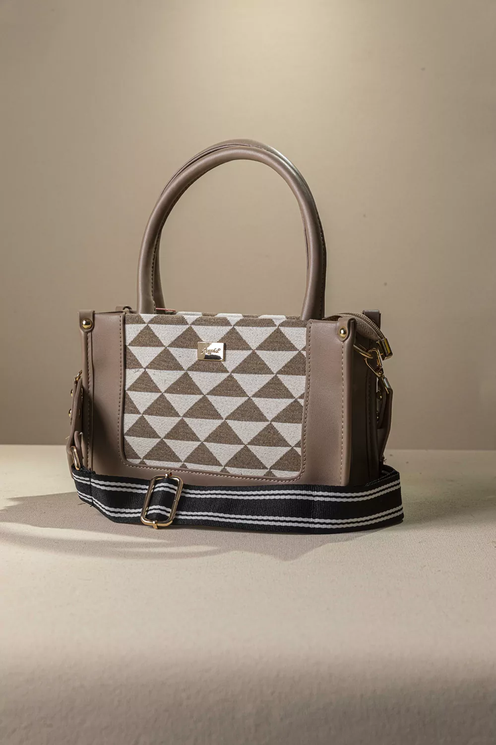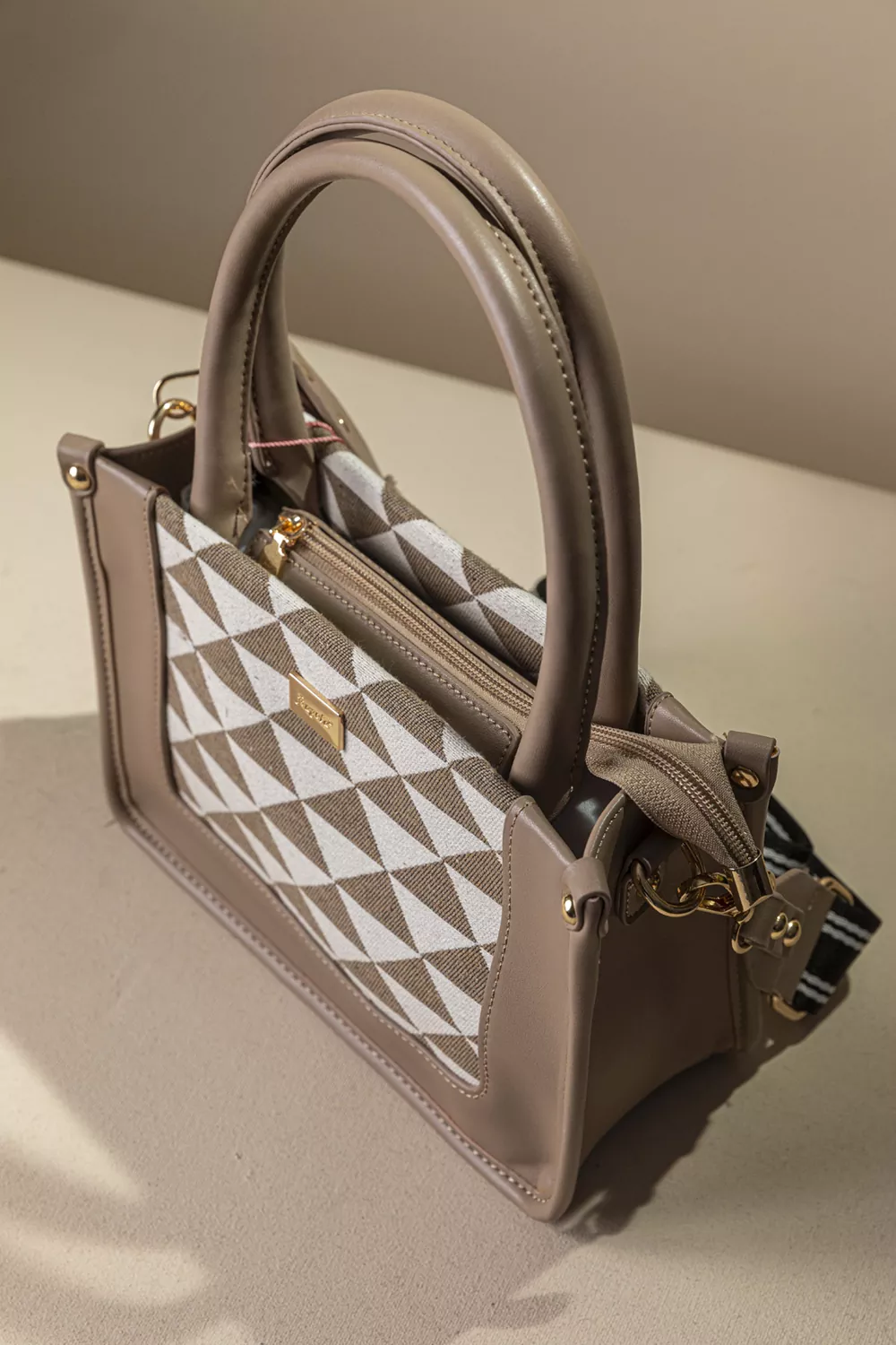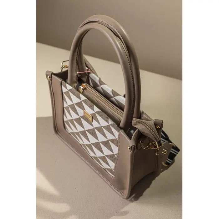• Υφασμάτινη τσάντα με εντυπωσιακό μοτίβο και μοντέρνες λεπτομέρειες που ξεχωρίζουν. Διαθέτει διπλά στρογγυλά χέρια για κράτημα στο χέρι, καθώς και αποσπώμενο ρυθμιζόμενο ιμάντα για χιαστί εφαρμογή, προσφέροντας άνεση και ευελιξία σε κάθε περίσταση.