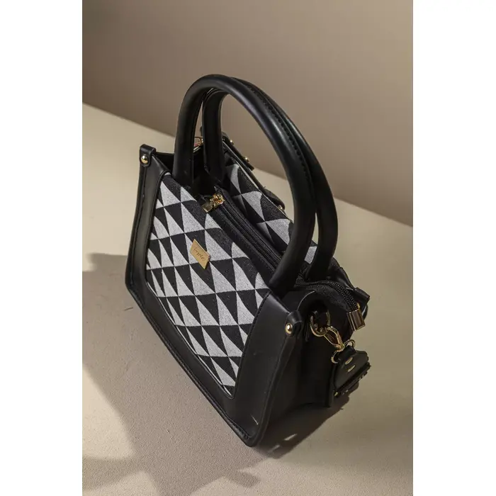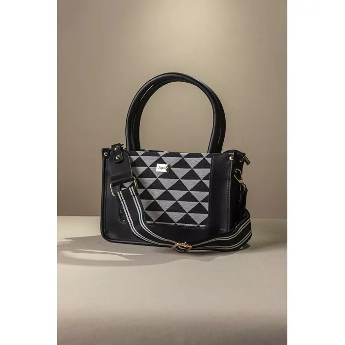• Υφασμάτινη τσάντα με εντυπωσιακό μοτίβο και μοντέρνες λεπτομέρειες που ξεχωρίζουν. Διαθέτει διπλά στρογγυλά χέρια για κράτημα στο χέρι, καθώς και αποσπώμενο ρυθμιζόμενο ιμάντα για χιαστί εφαρμογή, προσφέροντας άνεση και ευελιξία σε κάθε περίσταση.