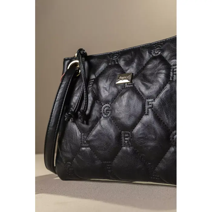 Υλικό: Μαλακό συνθετικό δέρμα με παλαιωμένη όψη και καπιτονέ γαζιά που απεικονίζουν τα γράμματα της εταιρείας.