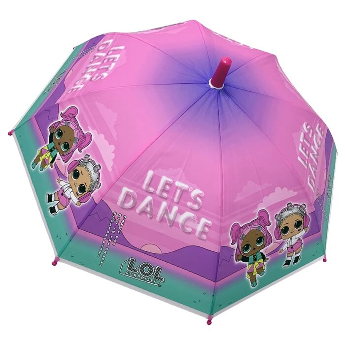 Ομπρέλα παιδική μονοκόμματη με χειροκίνητο άνοιγμα ασφαλείας, μεταλλικό άξονα, 8 ακτίνες μήκους 38cm fiberglass, αντιανεμική, διάμετρος ανοιχτής ομπρέλας ≈ 76cm, POE embossed και λαβή μαγκούρα, LOL