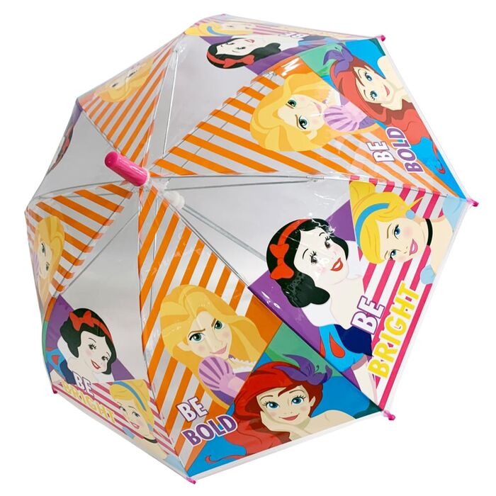 Ομπρέλα παιδική μονοκόμματη με χειροκίνητο άνοιγμα ασφαλείας, μεταλλικό άξονα, 8 ακτίνες μήκους 38cm fiberglass, αντιανεμική, διάμετρος ανοιχτής ομπρέλας ≈ 76cm, POE embossed και λαβή μαγκούρα. PRINCESS